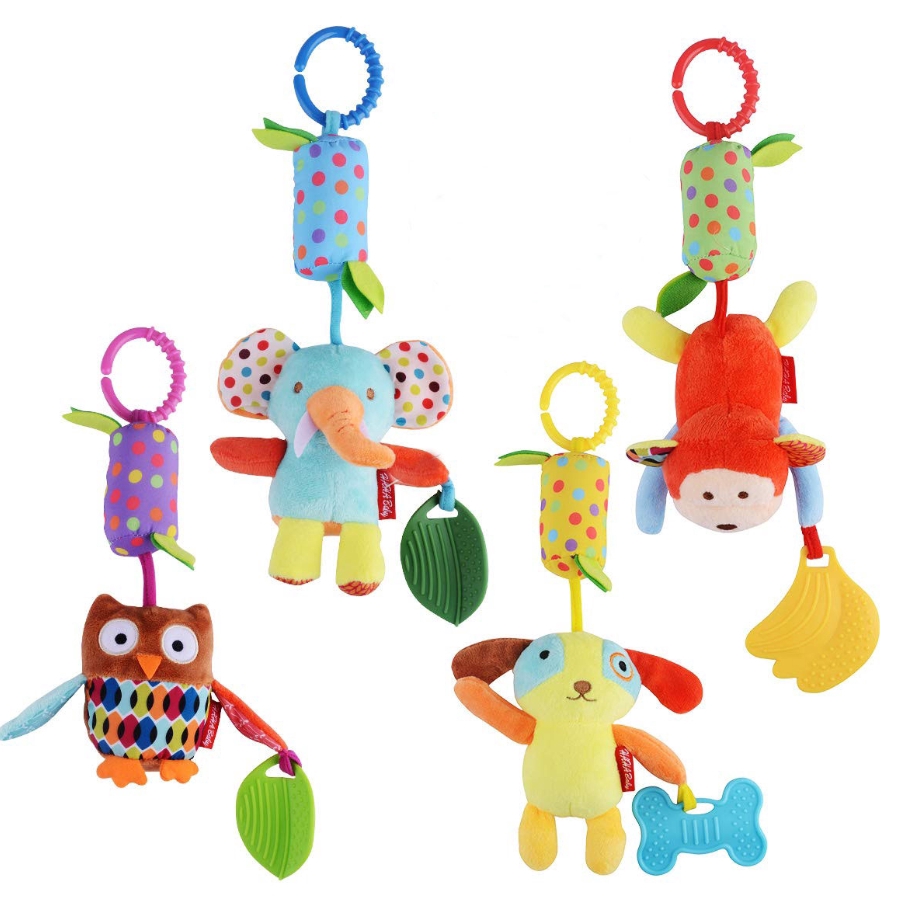 0-12M Infant Newborn Stroller Car Seat Crib Travel Activity Plush Animal Wind Chime with Teether for Boys Girls | Shopee Singapore